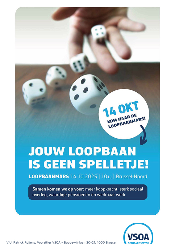 (18/09/25) - De interprofessionele vakorganisaties ACLVB, ABVV en ACV organiseren een grote actie, waaraan ook VSOA deelneemt.